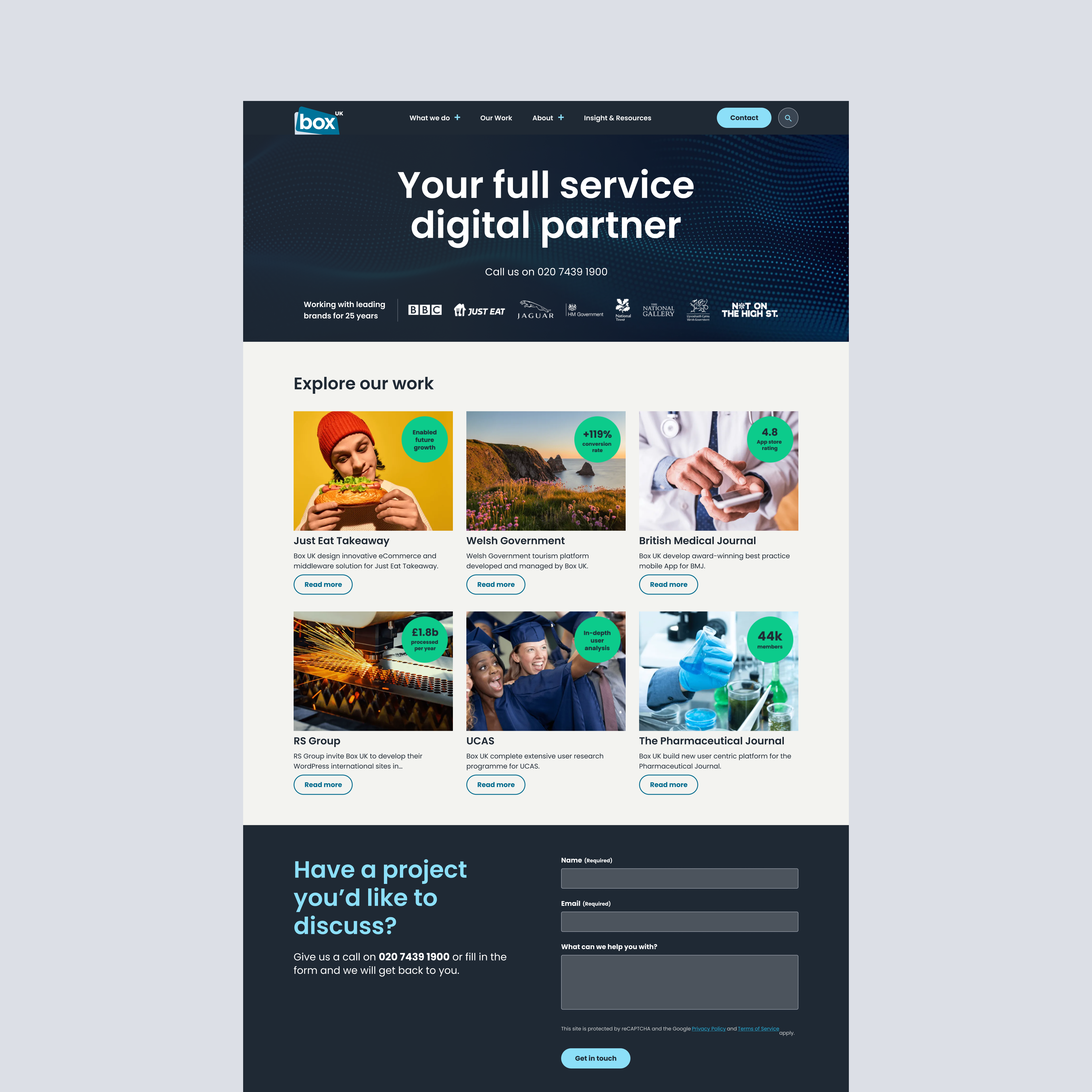 Redesign of Box UK’s marketing site from the ground up to drive leads, and support agency growth.